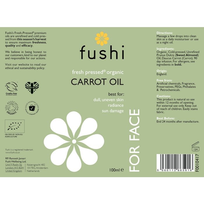 L'olio di carota si ottiene facendo macerare la polpa di carote intere in olio di mandorle dolci biologico, che lo rende estremamente ricco di beta-carotene, vitamine A, B, C, D ed E e acidi grassi essenziali. È ottimo per la pelle danneggiata dal sole, grazie al suo alto contenuto di beta-carotene. È anche benefico per la pelle secca, l'invecchiamento o la pelle rugosa ed è noto per aiutare a rigenerare e idratare la pelle. L'olio di carota è anche un ottimo balsamo profondo per capelli secchi. Può essere utilizzato anche per lenire le ustioni. Confezionato in una bottiglia di vetro per proteggere il contenuto da calore, luce, ossidazione e umidità.